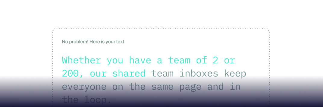 Whether you have a team of 2 or 200, our shared team inboxes keep everyone on the same page and in the loop.